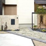 アプローチには乱形石や和洋問わず空間になじむ植栽もうまく活用し、